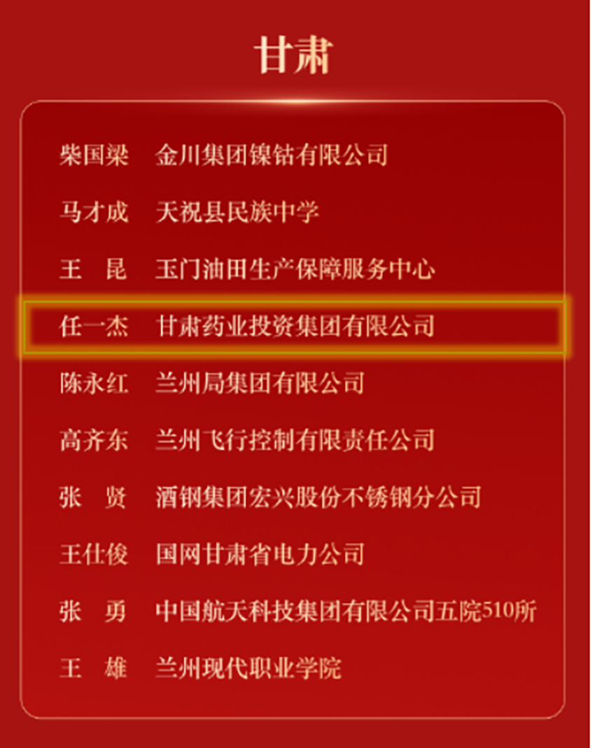 喜報(bào)| 甘肅藥業(yè)集團(tuán)任一杰榮登2025年“勞模助企行”表揚(yáng)名單