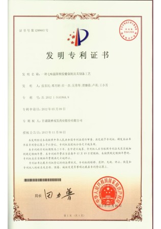 獲國(guó)家重點(diǎn)新產(chǎn)品、中國(guó)專利優(yōu)秀獎(jiǎng)、甘肅省專利獎(jiǎng)、甘肅省科技進(jìn)步獎(jiǎng)等省級(jí)以上科技獎(jiǎng)勵(lì)共13項(xiàng)。